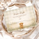 Ein charmantes Landdesign mit einem flauschigen Kalb, einem süßen kleinen Lamm und kleinen gelben Küken, eingebettet in weiche Wiesenwildblumen. Der warme Pergament-Hintergrund und die gedämpften Erdtöne schaffen eine gemütliche, rustikale Atmosphäre mit einem sanften Märchenbuch-Gefühl. Zarte Grünpflanzen umrahmen das Layout, während die Farmtier-Illustration Wärme und Persönlichkeit verleiht. Perfekt für eine neutrale, ländliche Feier mit klassischem Farmhaus-Charme.