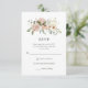 Diese einfache, elegante Hochzeitskarte mit ihrem rustikalen Bouquet aus Aquarellfarben und Grün in neutralen Farbtönen wie Pfirsichterrakotta und Elfenbein auf weißem Hintergrund. Die Vorderseite der Karte ist eine eher traditionelle Antwort-per-Mail-Antwortkarte, während auf der Rückseite der Karte ein QR-Code und Ihre Hochzeitswebsite für Gäste, die lieber online UAWG.