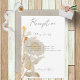 Dieses schlichte und elegante Design besticht durch einen Eckbukett aus neutralem Bräunen, weißen und goldenen Wildblumen. Es ist Teil der Neutral Tan Wildblumen Moderne Hochzeitssuite, die von Simply Farmhouse Press kreiert wurde.
