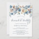 Diese trendige und wunderschöne Bridal-Einladung "Bunch and Bubbly" enthält Aquarellfarben-Blume in neutralen, beigen, Elfenbein- und staubblauen Farbtönen sowie elegante blaue Kalligrafien.