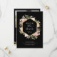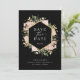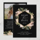 Diese atemberaubende Hochzeit bewahrt die Dattelkarten mit einem vergoldeten geometrischen Rahmen von Imitaten, umgeben von üppigen, wasserfarbenneutralen Blume in neutralen Erdtönen, wie Beige Pfirsich, staubige Rose und weiches Grün mit goldenen Akzenten und Blätter. Ein eleganter bohoner Blumenlook auf dunklem schwarzem Hintergrund. Auf der Kartenrückseite befinden sich zwei Ihrer persönlichen Fotos und ein Raum für weitere Informationen.