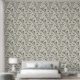 Diese botanische Tapete zeigt fließende Blumen- und Blattmotive in einem rauchigen Graugrün vor einem weichen, warmen Beigeton-Hintergrund. Die stilisierten Blüten und geschwungenen Stiele erzeugen einen sanften, organischen Rhythmus, der sich ruhig und einladend anfühlt. Die gedämpfte Farbpalette verleiht diesem Design eine moderne boho-Eleganz und macht es zu einer schönen Ergänzung für gemütliche Schlafzimmer, ruhige Wohnräume und naturinspirierte Interieurs. Die zurückhaltenden Farben und das elegante Muster bringen eine weiche, cottagecore-freundliche Wärme und Bewegung in jeden Raum.