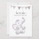Modernes Design mit einem Babyelefanten mit grauem/brauner Fahne oben, auf dem "Er oder sie, was wird unsere Erdnuss sein?" steht. Auf der Rückseite sind unsere Einladung Vorlagen, Grün und Zauberstab mit sprudelnden Blasen.