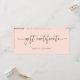 Dieses moderne und neutrale, rosa pfirsichfarbene und braune Geschenkgutschein zeichnet sich durch elegante handgeschriebene Schrifttyp aus. Sie können Ihr Logo und einen QR-Code auf der Rückseite für ein einfaches, stilvolles und berufliches Aussehen hinzufügen.