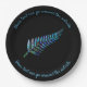 Klassischer Neuseeländischer Farn - in den lebhaften Farben der Paua Muschel. Fügen Sie Ihre eigene Nachricht am Rand des Tellers ein.
