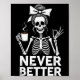 Never Better Skeleton Mom Drinking Coffee Hallowee Poster