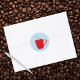 Hellrote Tasse gefüllt mit Ihrem Lieblingskaffee oder Tee. Verwenden Sie als Umschlag Aufkleber oder Aufkleber auf Ihren Lieblingsgegenständen und Geschenken. Die Farben sind rot, grau und blau.