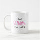 Neue große Oma Baby Birth Stats Kaffee Tasse New Great Oma personalisierte Becher. Dieses trendige Typografie-Design wird mit Vintagem Schreibmaschinentext und schraffiertem Schriftart in Korallentönen versehen. Die Formulierung ist vollständig editierbar, wenn also Ihre neue Urgroßmutter tatsächlich eine neue Grammie ist, zum Beispiel, können Sie sie für sie personalisieren.