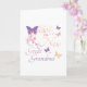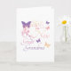 Ein wunderschönes Design in Pastellfarben lila und gelb mit blumigen Wirbel und Schmetterlingen.