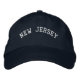 Eine einfache anpassbare Cap bestickt mit dem (anpassbaren) Text New Jersey. Wählen Sie Hut und Textfarbe und Stil Ihrer Wahl aus.