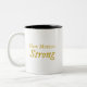 Die "New Mexico Strong" Zwei-Tone-Kaffee-Tasse verkörpert zeitgenössische Design-Trend und feiert gleichzeitig die Widerstandsfähigkeit und den Geist von New Mexico. Diese Tasse, die mit einem scharfen Blick für moderne Ästhetik gestaltet wurde, verbindet die minimalistische Eleganz nahtlos mit einer wirkungsvollen Botschaft. An der Vorderseite der Tasse wird die kühne, stilvolle Typografie gezeigt, die "New Mexico Strong" in goldenen Buchstaben ausdrückt. Der Einsatz von Goldakzenten verleiht der Tasse eine Touch von Luxus und Prestige, was die visuelle Anziehungskraft erhöht und eine kraftvolle Aussage macht. Die Wahl des Schriftartes spiegelt moderne Designsensibilitäten wider, mit schlanken Sans-Serif-Figuren, die ein Gefühl von Stärke und Widerstandskraft vermitteln.