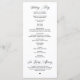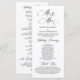 Der neue Mr. und Mrs., Elegant Vintage klassische Schwarz-Weiß-Design Thema, Hochzeit Zeremonie Programm in Karte (lang). Es ist mit Scrollakzent entworfen, der personalisiert werden kann mit benutzerdefiniertem/personalisiertem Text für Ihr Brautparty, Zeremonie Details, Gedenkhinweise und Dankeschön-Nachricht.