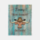 Personalisieren Sie diesen kleinen Cowboy's "One of a Kind" New Sheriff in Town Fleece Blanket! Es ist ein Comical Longhorn Steer mit einem braunen Sheriffs Western Cowboy Hut mit einem Big Gold Sheriff's Star, umgeben von den Worten..."Neuer Sheriff in der Stadt" auf einem Waldgrundstück! Dieses kleine Junge's Blanket hat ein Matching Kissen und Türsigne! Original Design von Künstler Kerry Miller!