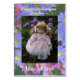 Herzlichen Glückwunsch Sie haben einen neuen Schwestertext auf lila Blumenkarte mit hübscher Puppe in lila Kleidung in Gartenszene mit Blumenhintergrund