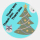 A cute, playful holiday-themed design featuring a decorated Christmas tree with a star on top, colorful garlands, and circular ornaments. On the left side, there is a cartoon Schnauzer dog face, and on the upper right, a fluffy white dog face smiling with its tongue out. The background is a bright turquoise color. The phrase “Thank you, Thank you, Thank you” appears multiple times in bold black text, arranged diagonally along the left side of the image.
