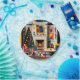 A vibrant, modern Christmas scene blending Memphis Style, New Wave 1980s shapes, Mondrian-inspired color blocking, and Roy Lichtenstein-style pop-art textures. This bold holiday scene features a decorated tree, glowing fireplace, and graphic patterns that make your greeting feel energetic, artistic, and unforgettable. Perfect for design lovers who appreciate a little flair with their festive cheer.