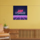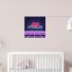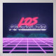 Eine neue Retro-Welle Los Angeles schweben über einem rosa Neongitter und blauen und grünen Neonbergen. Es ist hella 80's look'.