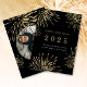 Elegante zweiseitige Weihnachtsgrüße mit goldenem Feuerwerk auf schwarzem Hintergrund. Die Funktion "Happy New Year 2025" und eine festliche Nachricht vorne, sowie ein individualisierbares Foto und Familienname auf der Rückseite. Ideal für eine personalisierte, luxuriöse Fotokarte.