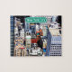 Puzzle aus New York City mit einer farbenfrohen Fotografie der künstlerischen Architektur der Stadt, dem typisch grünen und weißen Stadtschild und dem anpassbaren Text "New York City".