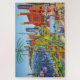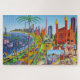 The painting features New York’s great landmarks: the Statue of Liberty, the Chrysler Building, the Empire State Building, perhaps the Guggenheim Museum, major skyscrapers, and other well-known structures.
