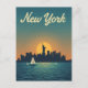 Celebrate the magic of New York City with this vintage-style illustration of the iconic skyline at sunset. The glowing sun behind Statue of Liberty and sailing boats on the water create a timeless travel scene. Perfect for collectors, wanderlust lovers, or anyone who adores the energy and beauty of the Big Apple.