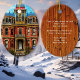 Erste Weihnachten in unserem neuen Zuhause-Foto-Ornament. Fügen Sie der einen Seite ein Bild des neuen Hauses hinzu und personalisieren Sie den Rücken mit Datum, Adresse und Familiennamen.
