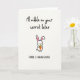 This card features a mostly white background that frames a cheeky, friendly scene with a little romance tucked into the joke 🌷. Near the top, casual black lettering reads, “I’ll nibble on your carrot later,” giving the message a teasing tone like a flirty note between close friends. Centered below, a small white bunny with long ears is drawn with simple black outlines, soft pink inside the ears, and tiny dot eyes that make it look sweet and innocent 🐰. The bunny holds an orange carrot with leafy green tops, angled slightly upward as if it’s being offered to someone just out of view. Under the illustration, a second line of black text appears in the same style, switching to all caps for emphasis: “SORRY, I MEAN EASTER.” The contrast between the innocent bunny and the self-correcting line adds a knowing, affectionate wink, like two people sharing an inside joke. The overall colors stay minimal—white, black, orange, green, and pink—while the bunny sits centered between the two lines of text. The carrot’s bright orange body and green leaves stand out against the white space beneath the top line of black lettering.