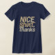 Das Material ist eigentlich gute Qualität, der Stoff ist nur etwas verzogen so dass der Drück leicht schief aussieht. Der Druck ist gute Qualität, habe das T-Shirt schon einige male gewaschen.