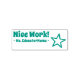 Dieses ermutigende Design der Gummi Briefmarke beinhaltet die positive Rückmeldung "Nice Work!" und den Namen eines personalisierten Lehrers, Lehrers oder Lehrers. Es verfügt auch über ein Symbol für die dekorative Sternform. Es könnte von einem Lehrer, Pädagogen oder Tutor verwendet werden, um anzuzeigen, dass ein Schüler gut abgeschnitten hat.