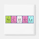 Nichola schrieb als Ni C H O La (Nickel Carbon Hydrogen Oxygen Lanthanum) auf einen Magneten für den Wissenschaftler in Ihnen.