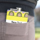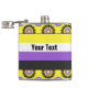 Vinyl umhüllter Kolben mit der nichtbinären Stolperflagge und einem nahtlosen, modernen geometrischen Blume-Muster in den Farben der Stolzflagge; ein gelbes, weißes, lila und schwarzes Stolz-Design auf einem gelben Hintergrund mit einer bearbeitbaren Textvorlage für Ihren Namen oder Ihre Nachricht.
