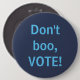 Das Round-Button-Button zeigt hellblau auf dunkelblauen Buchstaben und liest: "Nicht boo, STIMME!" Demokraten, Liberale, Progressive müssen abstimmen! Machen Sie politisch und erheben Sie Ihre Stimme. Genau wie Barack Obama sagt.