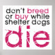 "Keine Rasse oder Kaufen, während die Hunde Die werden" Schwarz-Rosa Grunge Design. Zeigen Sie Ihre Unterstützung für die Rettung und Adoption von Hundehunden, und retten Sie Hunde, die "Todeszelle" abziehen.