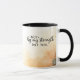 Die christliche Kaffeebar-Tasse zeigt eine einfache, minimale Wasserfarbe mit roten und gelben Herbstblättern. Es enthält ein inspirierendes Zitat von Bible Verse Philippians 2:13: "Nicht durch meine Stärke, sondern durch seine."