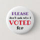 Frag nicht, wen ich für das Button in benutzerdefinierter Größe gewählt habe. Hier ist ein höflicher Weg, um den Menschen lassen, dass Ihre Stimme privat ist. Wenn Ihnen gefragt wird, für wen Sie gestimmt haben und Sie nicht gewollt haben, zu antworten, zeigen Sie einfach auf Ihren Pinback-Button. Sie können Ihre Knopfgröße und -form anpassen.