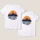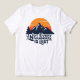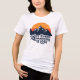 Ein kühner Tee mit einem Bergsonnenaufgang und Kiefernholz-Silhouette. Ideal für Wanderer, Camper und Abenteurer, die im Freien Liebe finden.