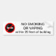 Nichtraucher- oder innerhalb 20 Fußes des Gebäudezeichens auf einem Autoaufkleber vaping.