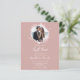 Eine schlichte, blumengeschmückte Imitat-Folie monogramm rosa Hochzeitseinladung. Einfach mit Ihren Daten personalisieren. Moderne boho Hochzeit Einladung editierbar, Kranz Foto Hochzeitseinladung, personalisierbar, kalligrafisch handgeschriebenen Schriftart, einfach, elegant.