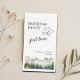 Ein elegantes Hochzeitsdesign mit Aquarellbergen und Kiefernbäumen, das Sie mit Ihren Details individuell gestalten können.