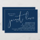 Dies ist die Hochzeitskarte Party Einladung, mit Minimalismus / minimalistisch Navy Blue Drehbuch Design (Nichts extravagant nur Liebe).