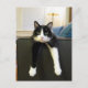 Unglaublich witzig Bild einer Schwarz-Weiß-Katze mit Vorderbeinen, die über der Couch hängt, sodass alles, was Sie sehen, sind die beiden Beine und Kopf.