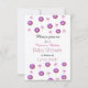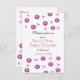 Ein niedliches Design mit lila Tasten und kleinen rosa Bögen auf weißem Hintergrund. Eine Babydusche-Einladung "niedlich als Knopfdruck", die nach Wunsch auf Ihre Wünsche zugeschnitten werden kann.