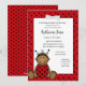 Niedliche afroamerikanische Grafik eines Ladybug Babys in einem roten und schwarzen Dotkarosseriebuch. Die Mama wird begeistert sein von dieser freundlichen Baby-Dusche-Einladung.