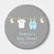 Ein niedlicher Magnet als Gastgeschenk für ein Baby-Dusche Party! Die Minikleidung und die Accessoires sind mit gelben Babysocken, einem weißen Baby-Jumpsuit mit Krawatte und pastellblauen Overalls mit Tasche und Holzpegs ausgestattet. Die Pastellfarben heben sich nur vom grauen Hintergrund ab und verleihen ihm Eleganz. Personalisieren Sie einfach mit Ihrer Party-Nachricht.