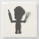 Niedlicher kleiner Koch, der einen Köche trägt und ein Whisk und rollendes Button hält.