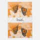Niedliche orangefarbene Schmetterlinge schmücken das Küchentuch. Füllen Sie Ihren Namen aus, um das Handtuch zu Ihrem zu machen. Folgen Sie dem Link - Bearbeiten mit dem Design-Tool - um die Geschenkfarbe zu personalisieren. Für Hilfe oder Diskussionen über ein individuelles Design wenden Sie sich bitte an https://t.me/KBMD3signs_chat.