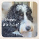 Diese Untersetzer der Geburtstagsparty haben einen niedlichen Bernedoodle, der in den Tomatenpflaster got.