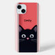 Niedlich Black Cat Kitten Moderne Personalisierte Name iPhone 15 Plus Phone Cases bietet eine niedliche schwarze Katze, die durch eine Tür schaut mit Ihrem personalisierten Namen in einfachen modernen Drehbuch Typografie. Von Evco Studio entworfen www.zazzle.com/store/evcostudio