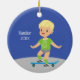 Dieses bezaubernde Skateboarddekor ist perfekt für ein aktives Kind, das Lieben zu Bord. Feiern Sie die Lieblingsaktivität Ihres Kindes mit diesem persönlichen Ornament, in dem ein blonder Junge auf einem blauen Skateboard sitzt.