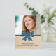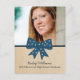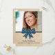 Sweet und charmant Niedlich Bow Abschluss Postcard mit einem skurrilen Polka Dot dunkelblauen Bogen und Imitat Papier Textur Hintergrund. Ideal, um die Neuigkeiten Ihres Absolventen anzukündigen und Freunde und Familie zur Feier der Leistung einzuladen. Einfach zu anpassen, fügen Sie einfach ein Foto und Ihre Party-Details in den Textfeldern zur Verfügung.